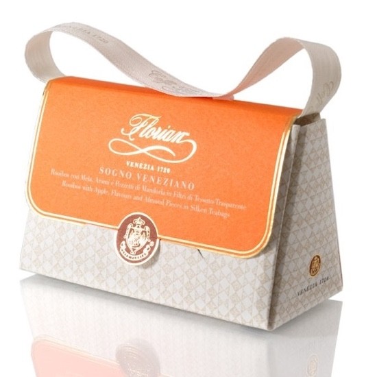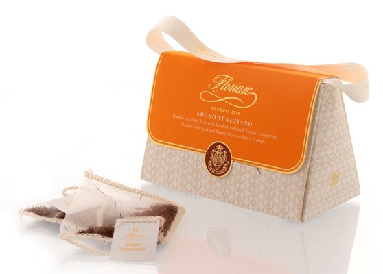 Rooibos, μήλο, κανέλα, βανίλια και κομμάτια αμυγδάλου: αυτά είναι τα μαγικά συστατικά που φτιάχνουν το Florian Venetian Dream.